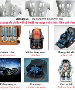 Thiết kế 3D tân tiến, thông minh và rất hiện đại khả năng massage mở rộng ở vùng lưng, tăng phạm vi tiếp xúc với cơ thể. Chuyển động của các lăn the không gian 3 chiều: rộng, dài, sâu hơn hẳn so với các dòng ghế massage 120.000.000 khác.