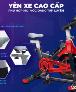 - Khung sườn cấu tạo bằng thép chắc chắn, dày dặn, chịu lực tốt và được phun sơn tĩnh điện cao cấp bền màu, chống hoen gỉ. Khung xe thiết kế vững chắc không rung lắc, thoải mái tập ở cường độ cao.