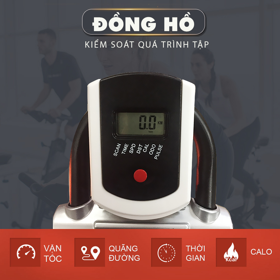Trang bị núm vặn tùy chỉnh kháng lực, để mọi người dễ dàng chọn cho mình mức tập luyện thích hợp thể trạng. Từ các bài tập đạp nhẹ nhàng cho đến leo dốc, vượt đèo,… Kết hợp chuyển động như thật giúp bạn sản sinh nhiều năng lượng tinh thần để tập luyện mỗi ngày.